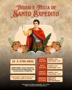 Começa no dia 24 o tríduo em honra a Santo Expedito, padroeiro das causas urgentes A devoção a Santo Expedito, conhecido como o intercessor das causas justas e urgentes, mobiliza centenas de fiéis na 9 abril 2025 Ler mais